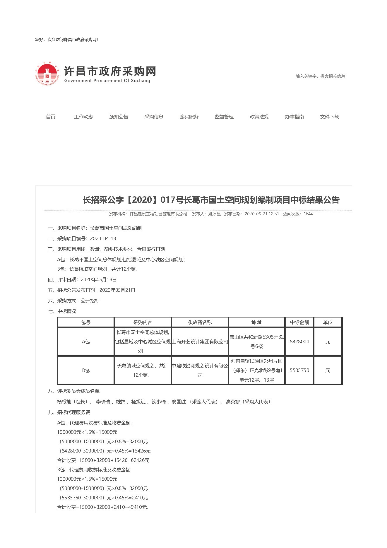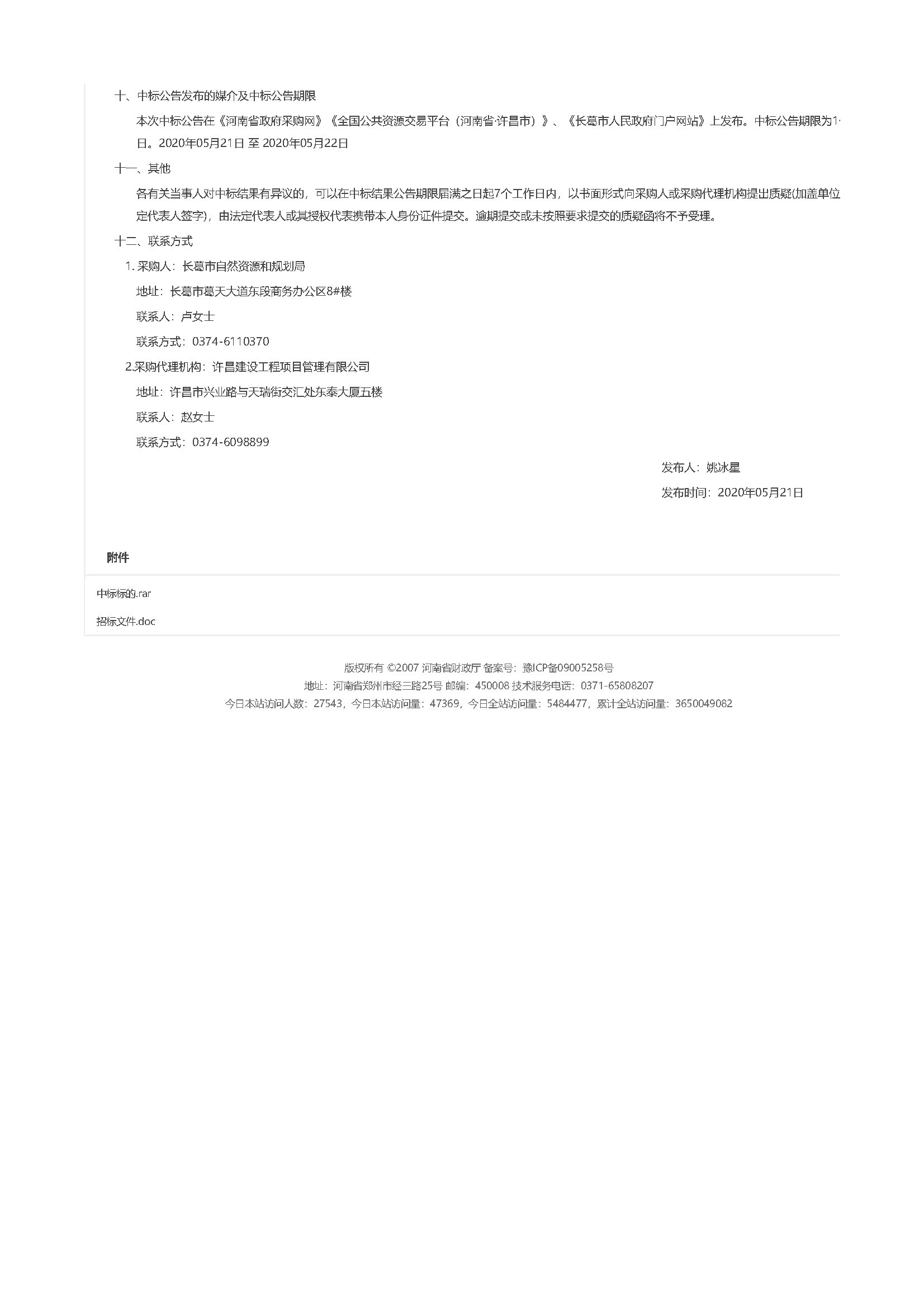 乐鱼网页版登录入口有限公司于2020年05月18日在许昌市长葛市国土空间编制项目的招标活动中成功中标。